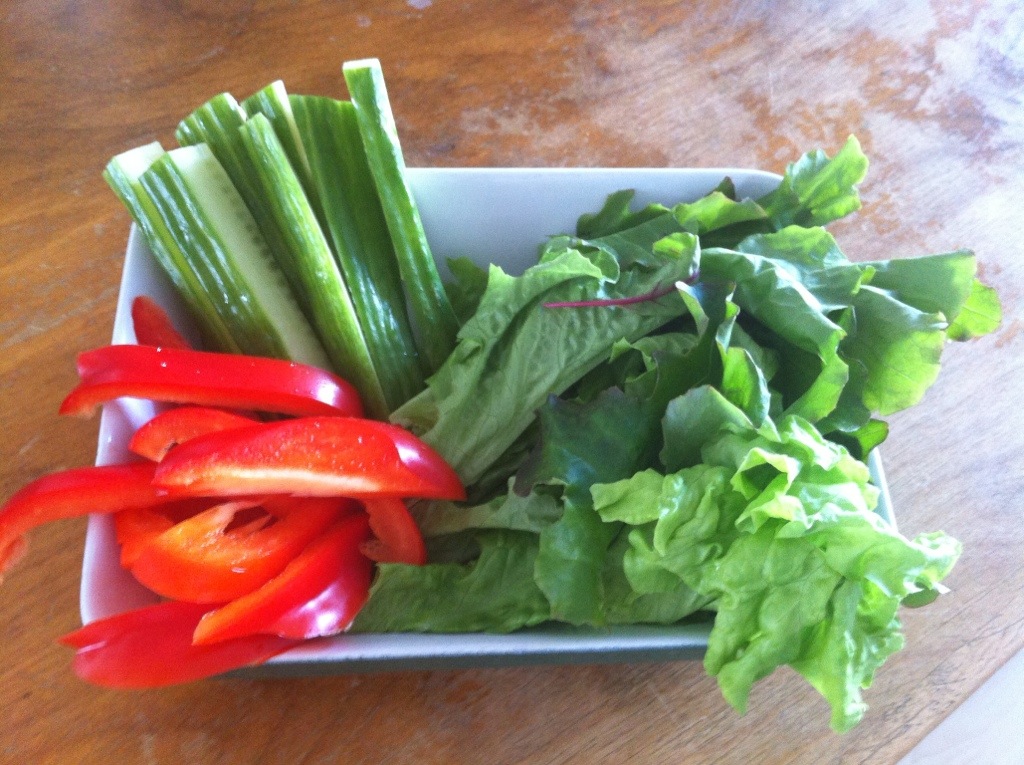 Við vorum með nýar kartöflur frá Seljavöllum, gott rúgbrauð og smjör og grænmetið var íslenskir Piccolotómatar frá Friðheimum. Þeir eru sætir og bragðmiklir, algjört nammi.